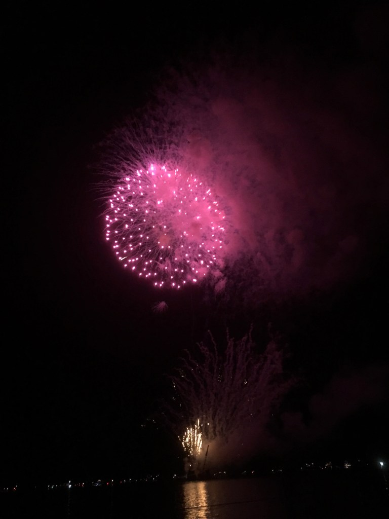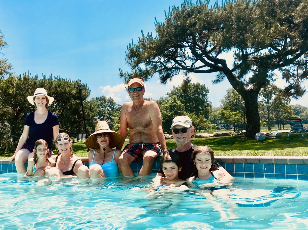July 4th at their home. In the pool with their grandchildren. Dinner together in town that evening.