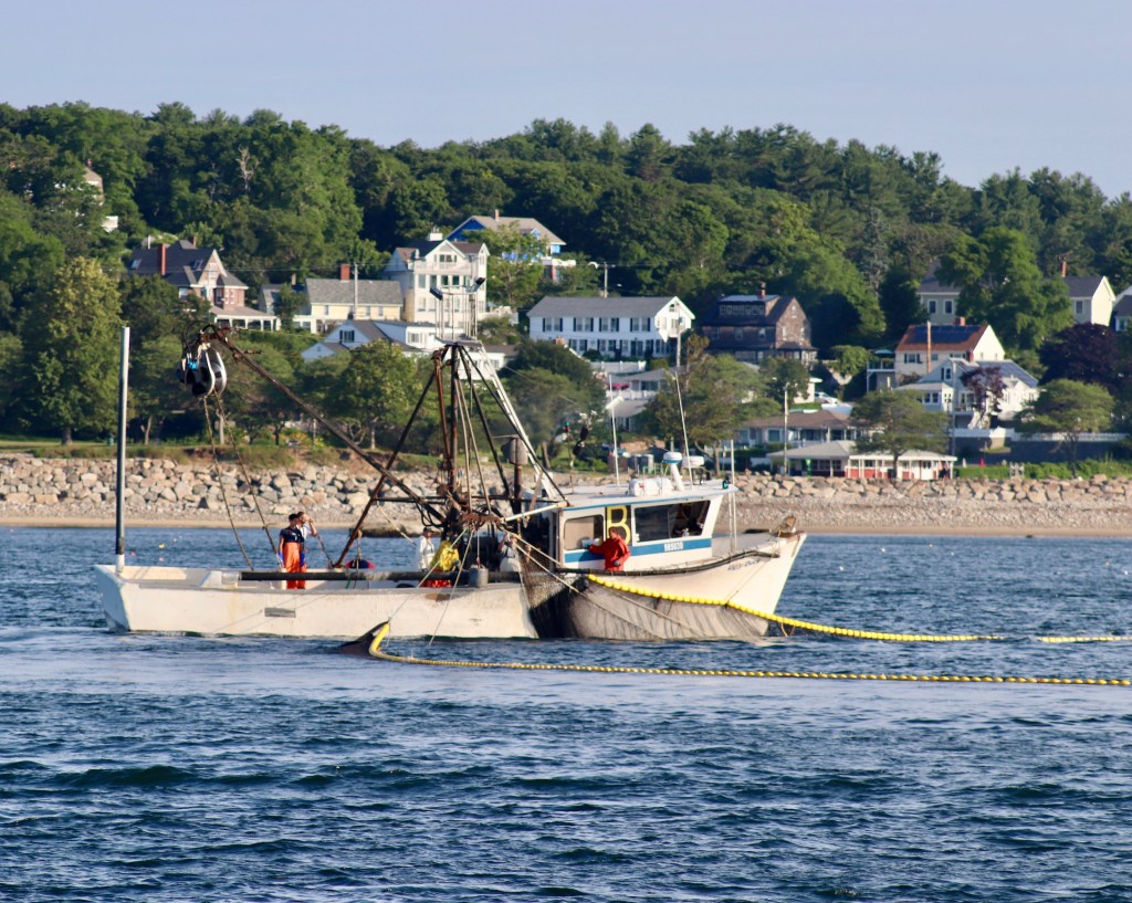We’re treated to watching nets being set – strung out behind a boat moving in ever expanding circles.